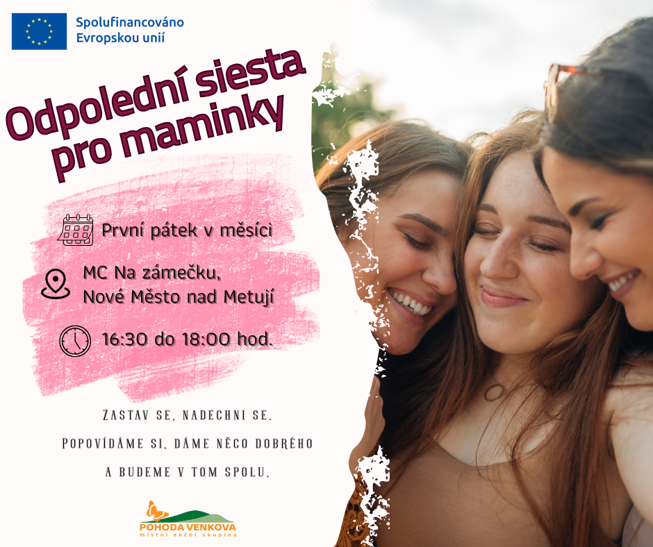 Každý první pátek v měsíci se potkáváme na Odpolední siestě pro maminky – prostoru, kde si můžete na chvíli vydechnout, popovídat si, dát si něco dobrého a prostě jen být.