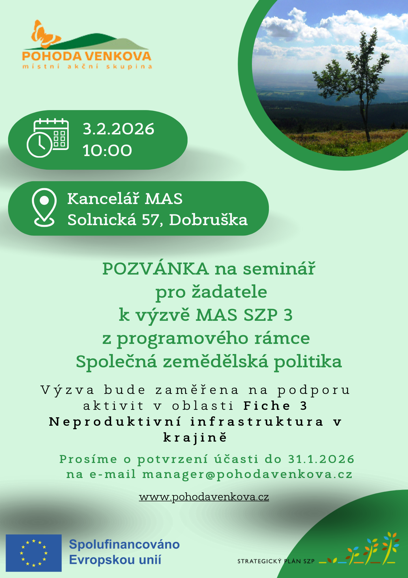 SZP - Pozvánka na seminář pro žadatele dne 3.2.2026 k výzvě SZP 3